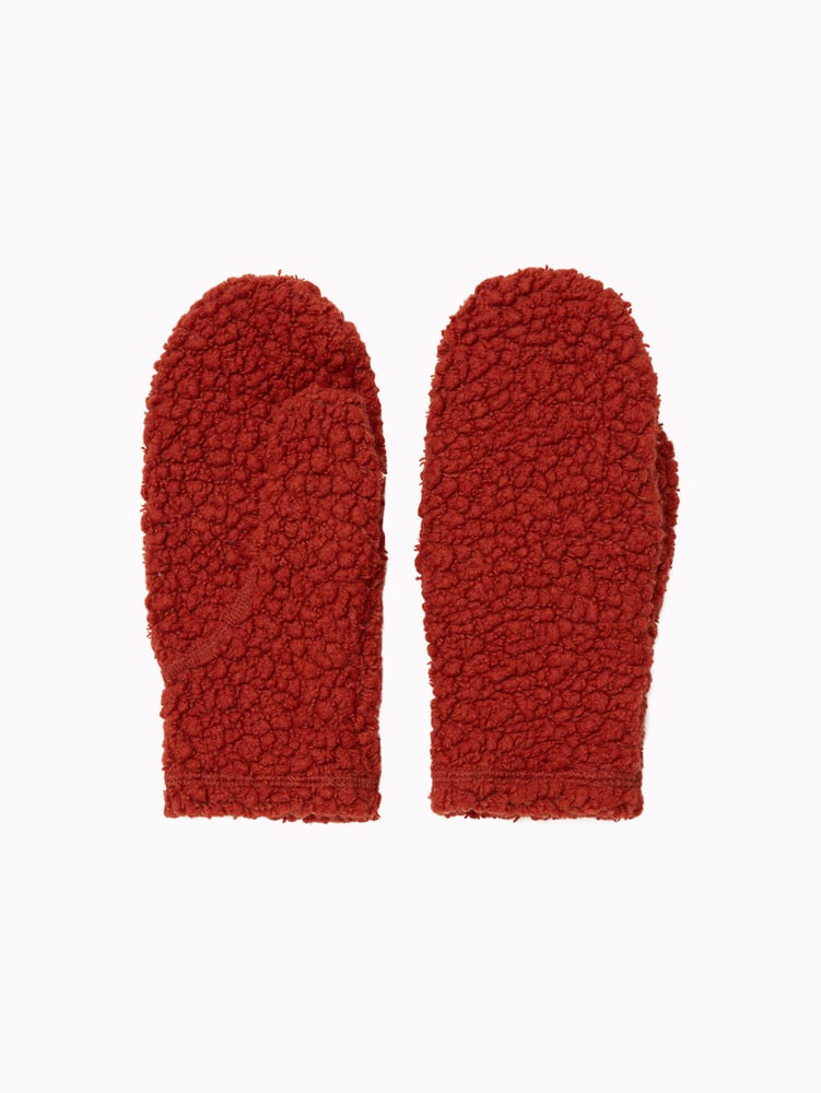 U Vargön Wool Mitten Rust Orange från Varg. Ullpilevantar fodrade med microfleece. Tillverkad av återvunnen ull från Italien. Ullvante i samma tyg som Vargön jacka. Mjukt och skönt foder i microfleece för extra värme.